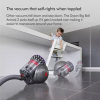 Thanks to Dyson Ball Technology, this vacuum rides on a ball for seamless steering, effortlessly navigating around furniture and tight spaces. Unlike traditional vacuums, the Dyson Big Ball Multifloor 2 Corded Cylinder Vacuum Cleaner BIGBALLMULTIFL2 automatically picks itself up if knocked over, eliminating the hassle of frequent adjustments.