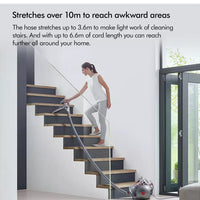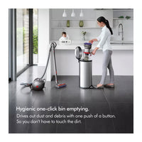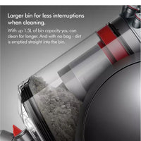 With a 3.6m hose stretch and a 10m total reach, the Dyson Multi Floor Big Ball makes cleaning stairs and hard-to-reach areas easier than ever. The 1.5L bin capacity allows for longer cleaning sessions between emptying, while the spring-loaded bin emptying mechanism ensures a hygienic, hands-free dirt disposal process.