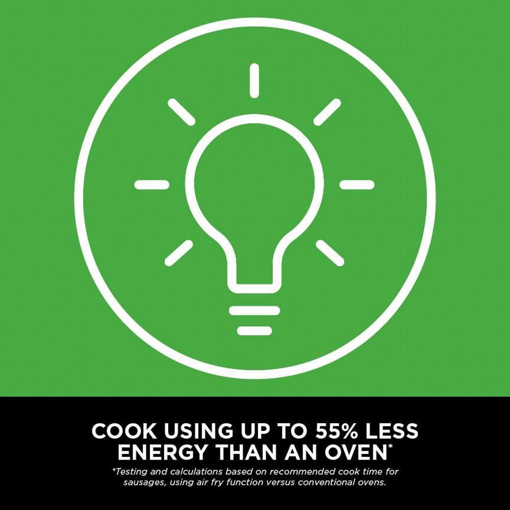 Cooking up to 55% faster than traditional fan ovens***, the Ninja SL400 double stack XL air fryer gets your meals on the table in record time. Plus, it uses up to 55% less energy†, making it an eco-friendly choice that reduces your energy bills.